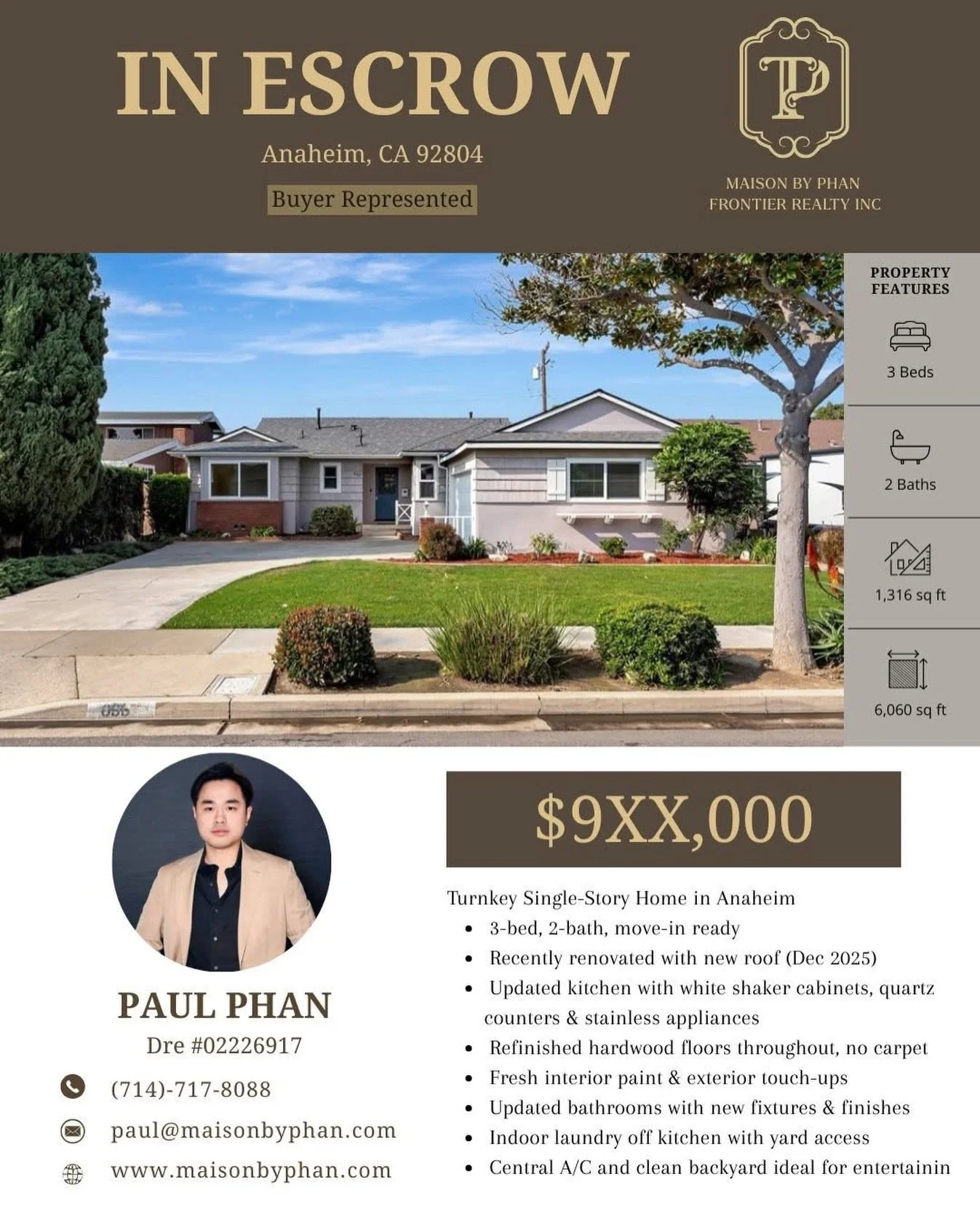 With over a decade of experience in Southern California’s real estate market, I bring analytical expertise, market insight, and a results-driven approach to every transaction. Whether it’s buying, selling, or investing, my focus is on strategic solutions that align with your goals—delivering seamless experiences and long-term success.